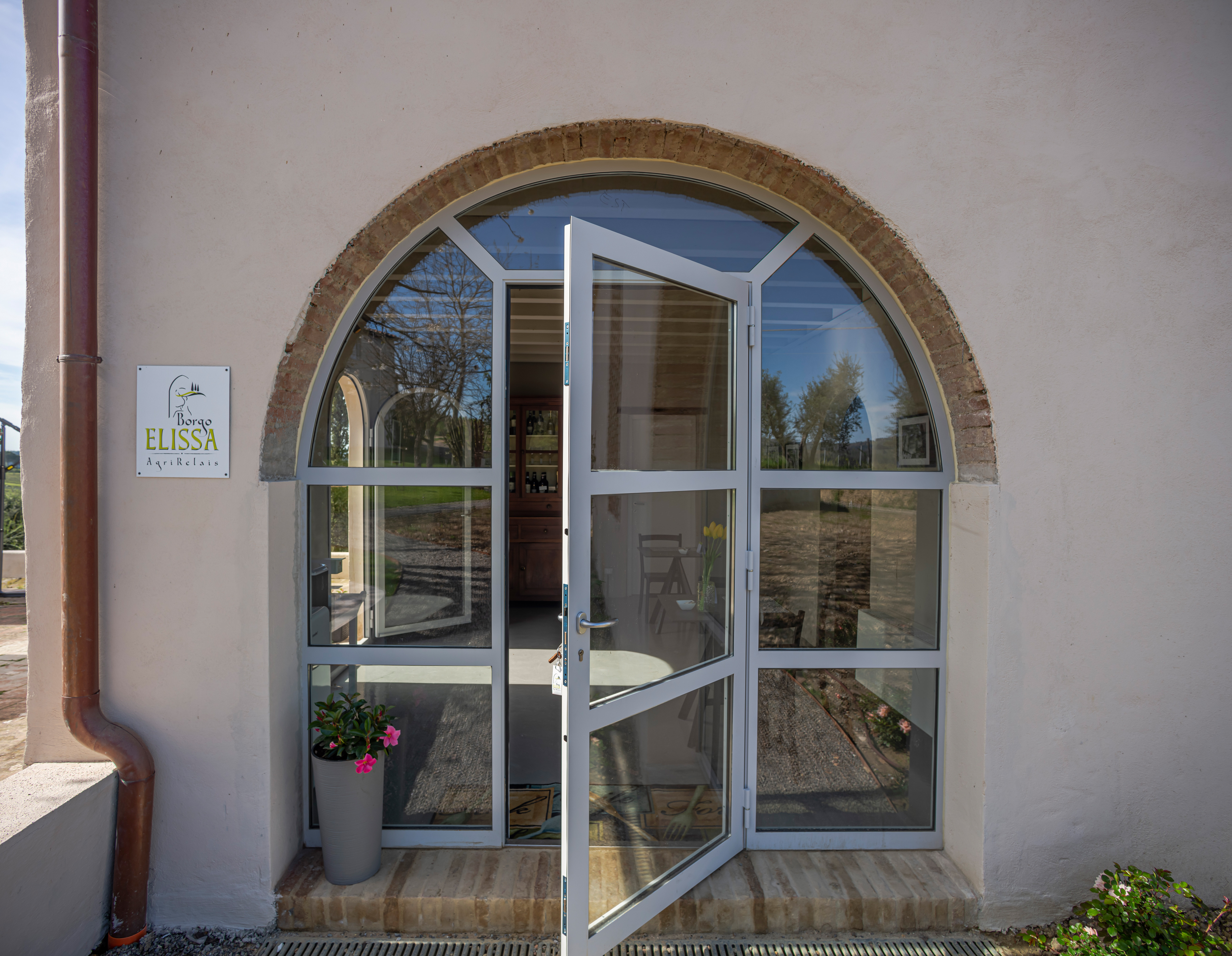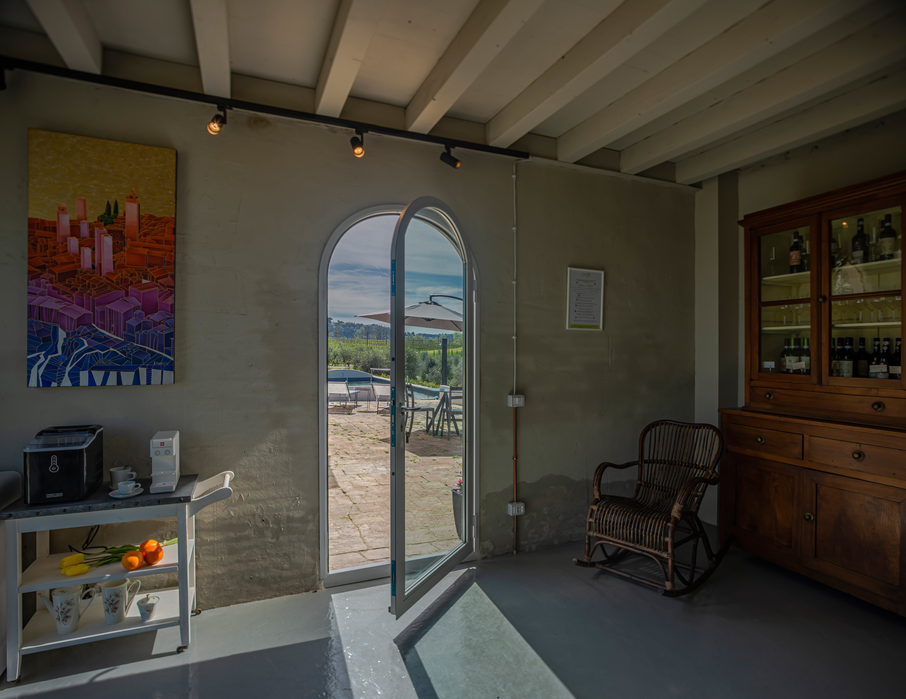Il borgo è articolato in due blocchi principali, circondati da olivi con una impareggiabile vista su San Gimignano e sulla campagna toscana. Il vecchio fienile adibito a sala colazioni e l’aia prospiciente alla piscina ne fanno un luogo dove silenzio e bellezza coccolano gli ospiti in un relax unico. La location è ideale per matrimoni e cerimonie, ritiri yoga, meeting aziendali e altri eventi speciali.